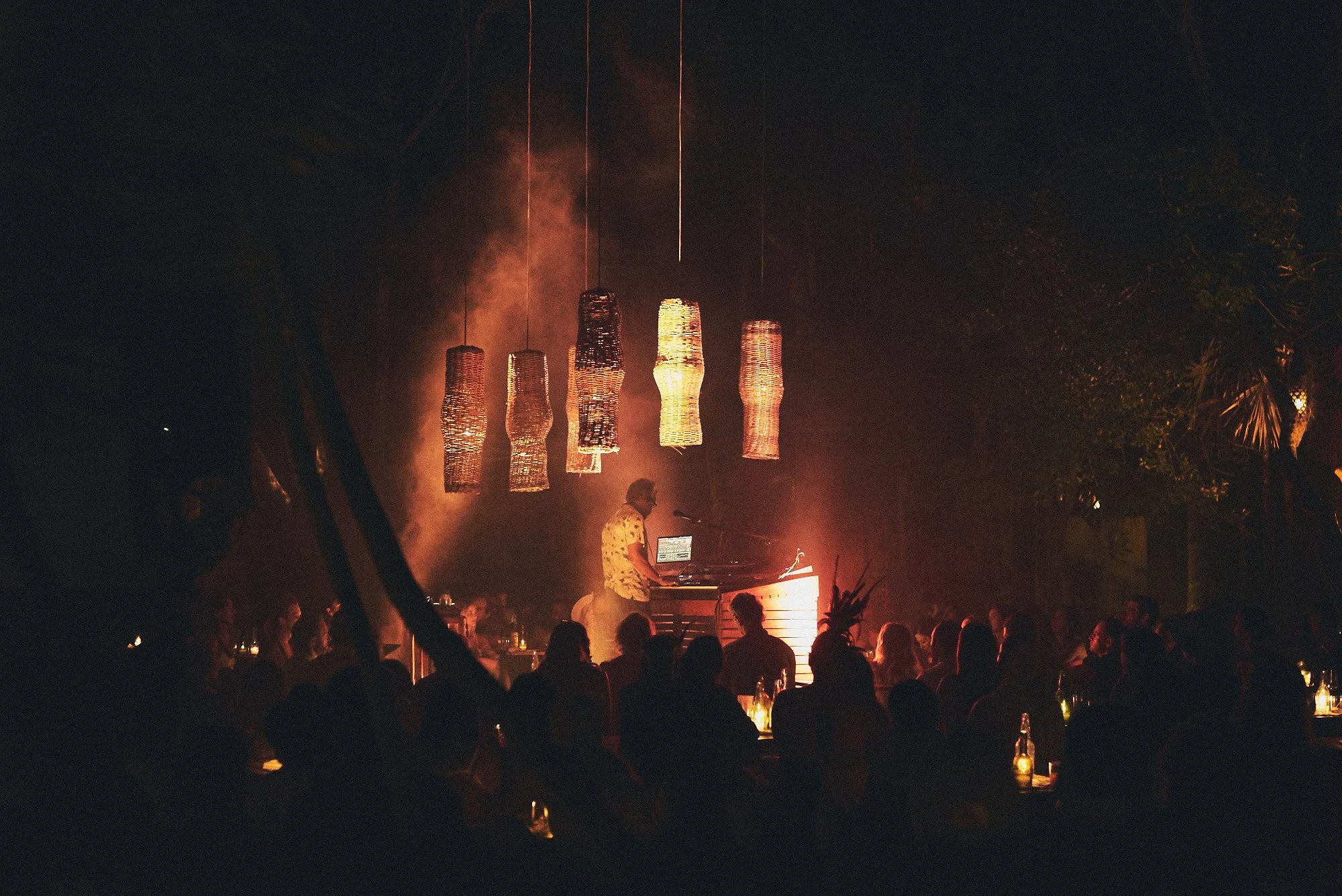 IS TO GIVE THE IMPRESSION THAT GUESTS ARE SITTING AND DANCING AROUND THE FIRE.